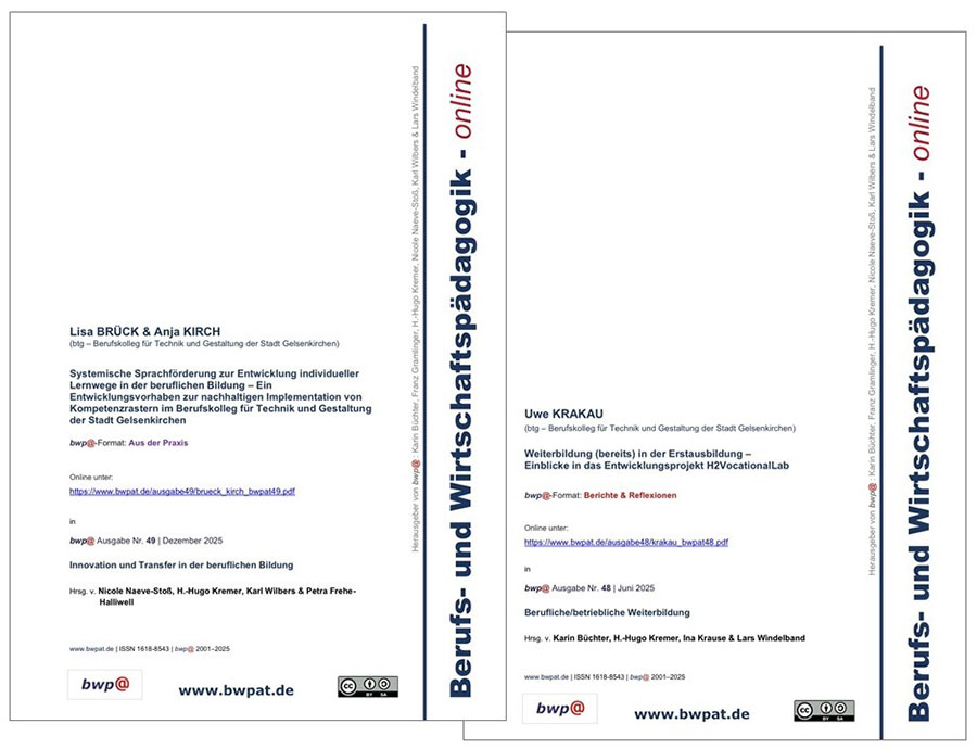 In zwei aktuellen Aufsätzen werden in der renommierten Fachzeitschrift bwp@ innovative Entwicklungsvorhaben des btg dargestellt und reflektiert.